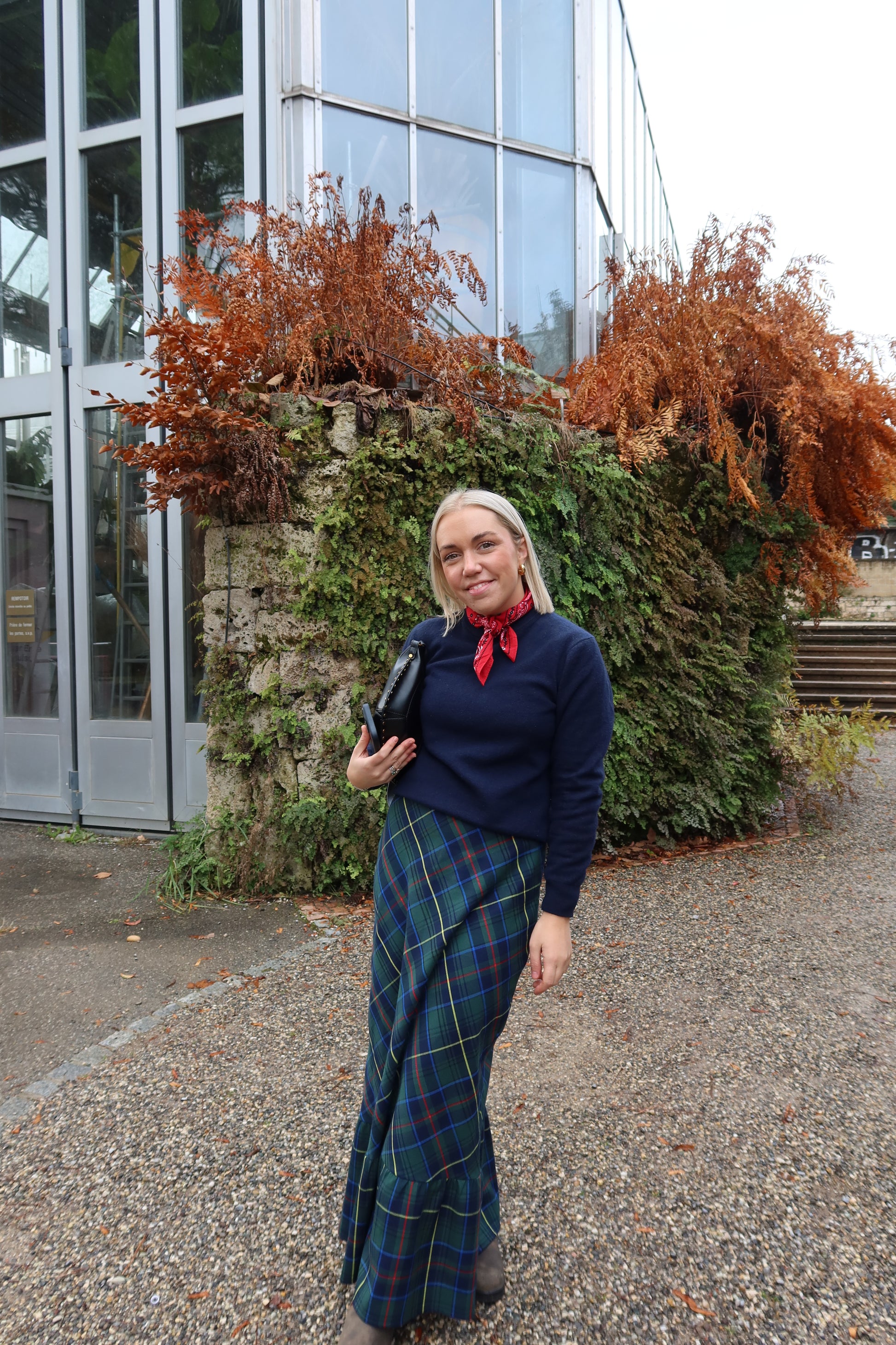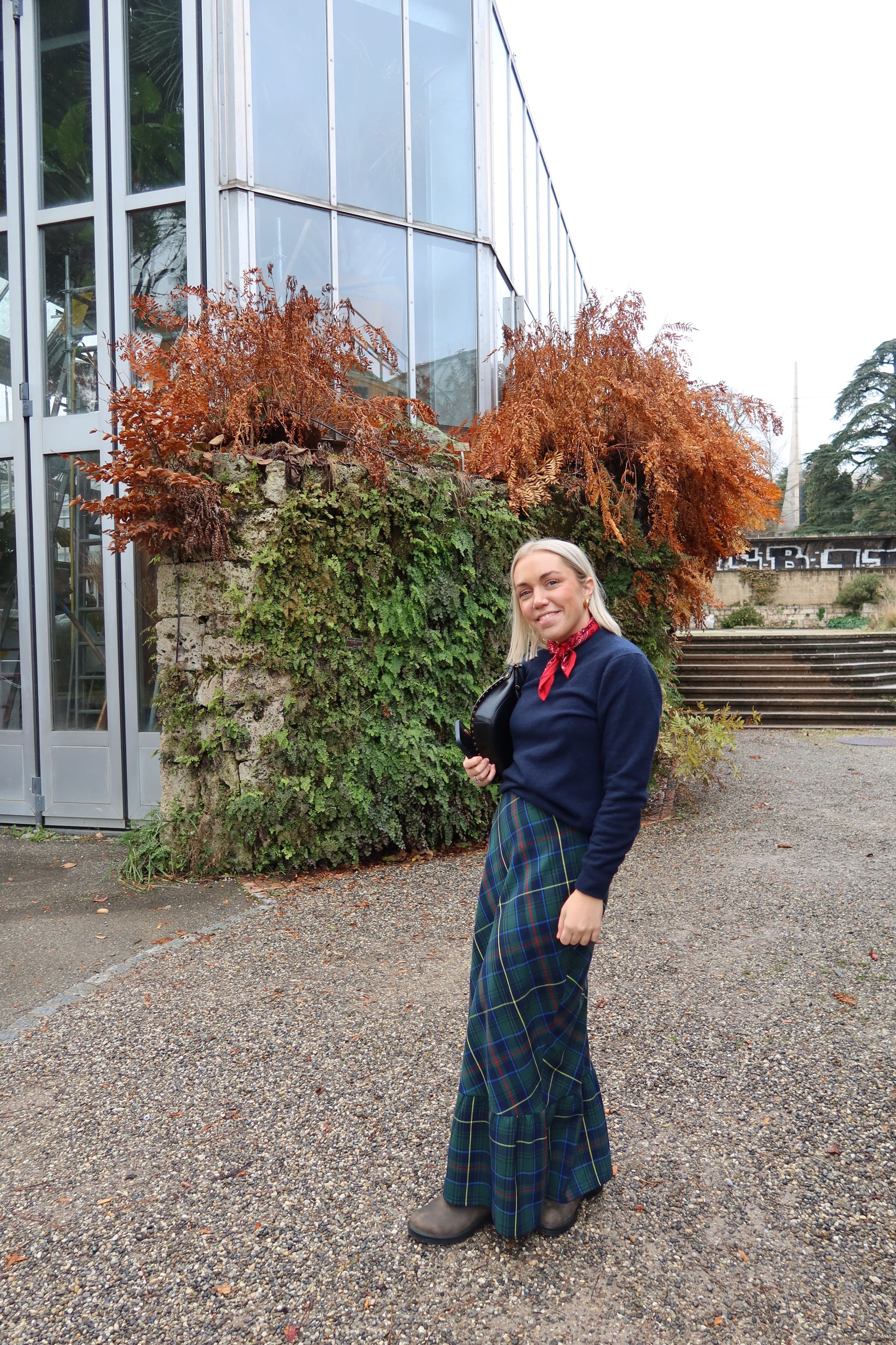 Nuestra falda Toulouse confeccionado bajo pedido en un pequeño taller artesanal en España. Cada pieza es creada con cuidado y precisión, reflejando el arte de la sastrería tradicional que destaca por su calidad y atención al detalle.