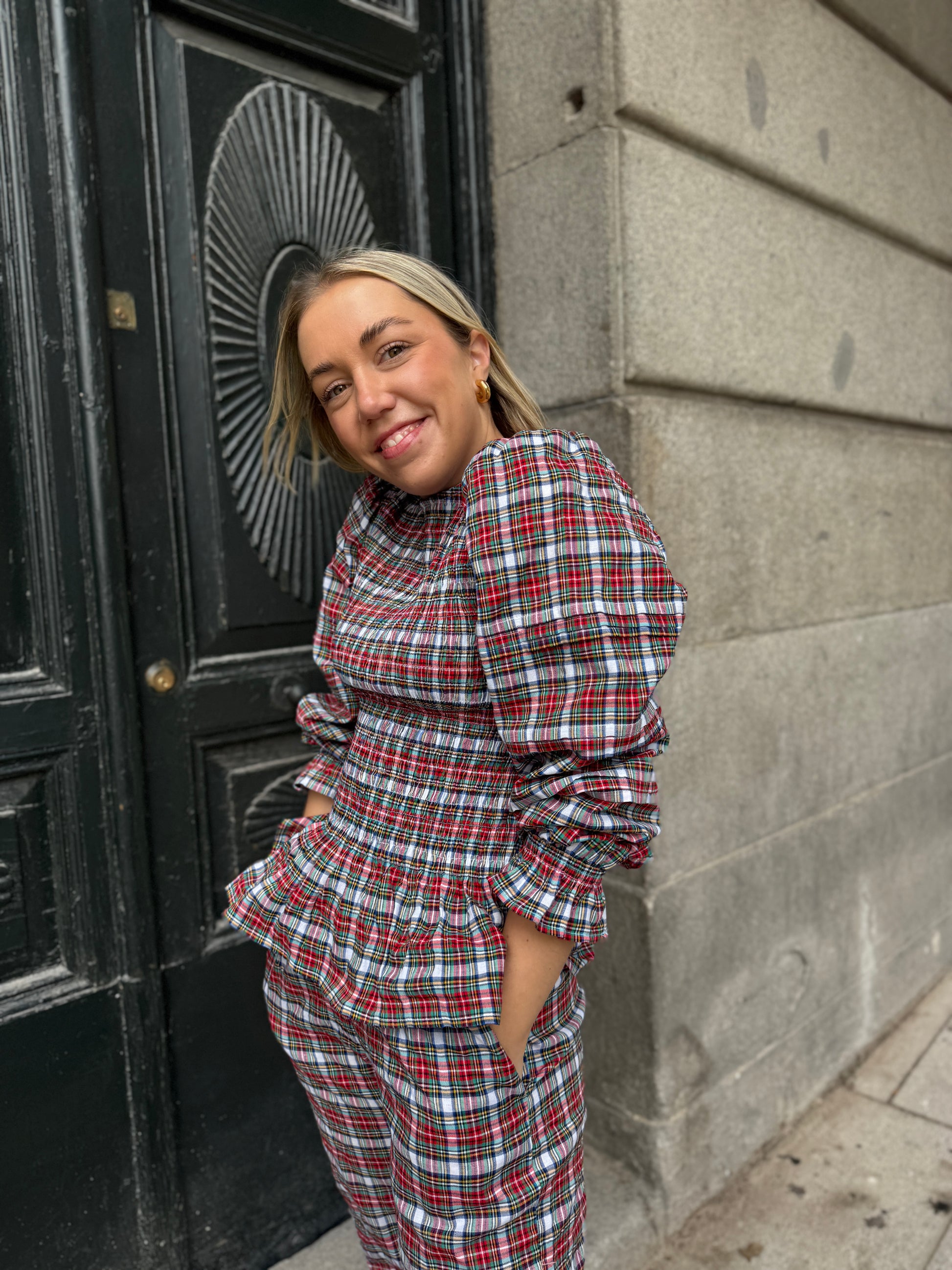 Nuestro conjunto conjunto Paris, confeccionado bajo pedido en un pequeño taller artesanal en España. Cada pieza es creada con cuidado y precisión, reflejando el arte de la sastrería tradicional que destaca por su calidad y atención al detalle.