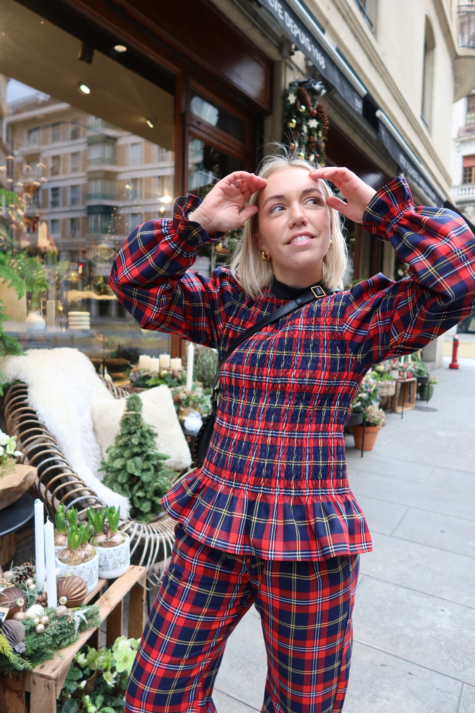 Nuestro conjunto conjunto Paris, confeccionado bajo pedido en un pequeño taller artesanal en España. Cada pieza es creada con cuidado y precisión, reflejando el arte de la sastrería tradicional que destaca por su calidad y atención al detalle.